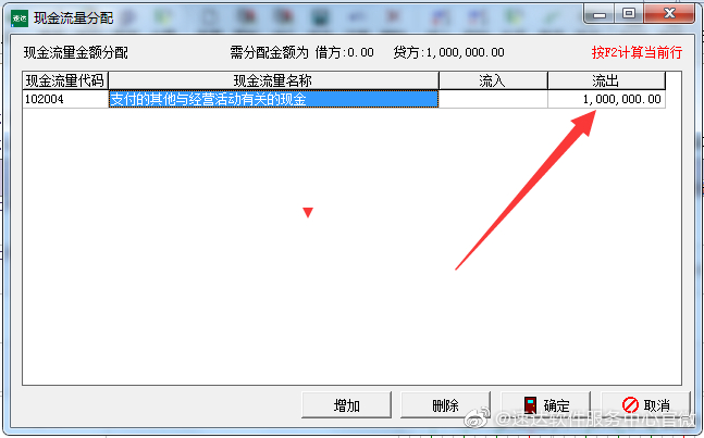【第四步】填入流入流出金额,或者右击计算当前行,或者按F2计算当前行,点击确定即可,分配完成