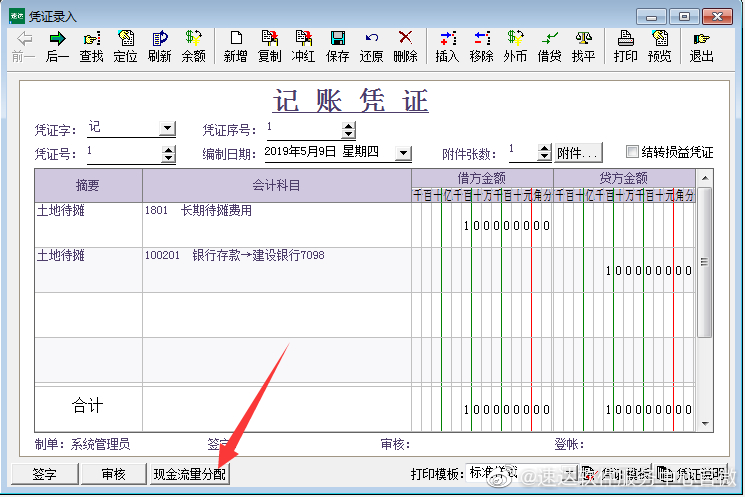 【第一步】做完和库存现金、银行存款、其他货币资金的凭证以后,点击现金流量分配